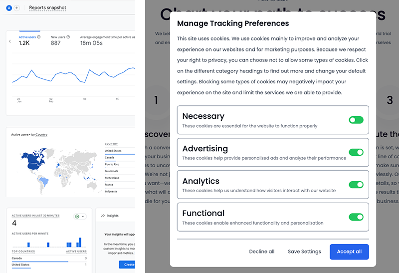 Stay on top of privacy regulations with proper tracking and consent setups. We ensure every data point is collected ethically and accurately—right from Google Tag Manager frameworks to evolving compliance standards. Custom dashboards and in-depth reporting then turn these insights into strategies that propel your business forward.